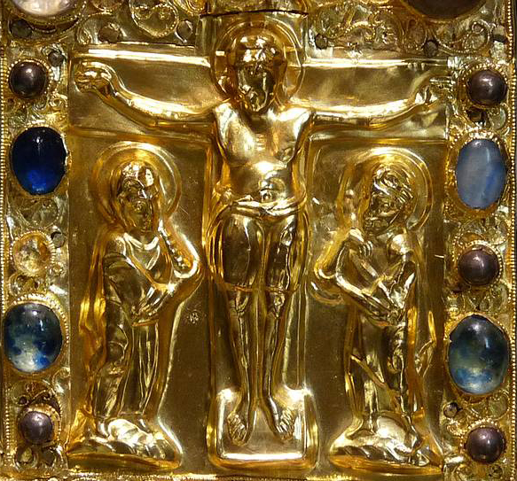 The same artist who created the cover for the Theophanu-evangeliar on show in the Landesarchiv Nordrhein-Westfalen is believed to be responsible for the cross made locally in Essen between 1046 – 1056.