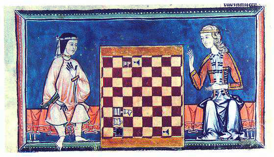Playing Chess in Medieval Iberia. El Libro de los Juegos, commissioned by Alphonse X of Castile, thirteenth century. Madrid, Escurial Library, fol. 63 recto